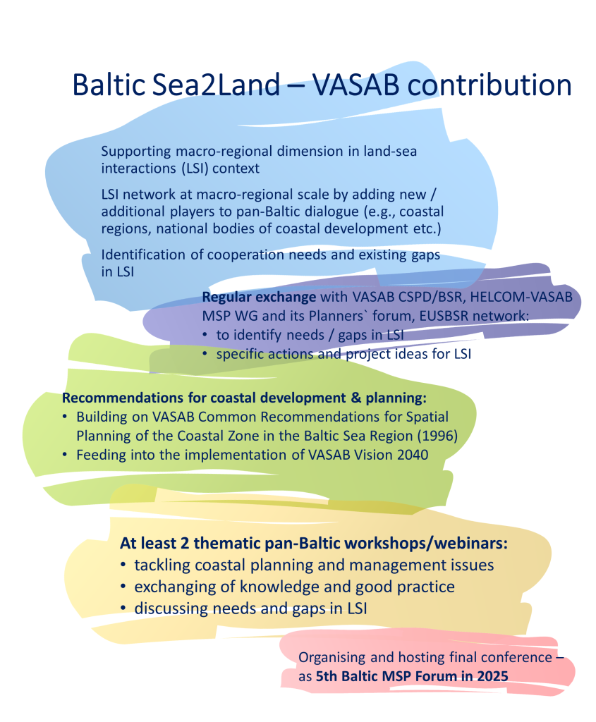 Baltic Sea2Land mostly focuses on Sustainable Blue Economy related challenges which have to be reviewed in multiple planning scales – from conflicts between locals and tourists to common transnational Maritime Spatial Planning and terrestrial planning approach. The project perceives planning as a single multi-layered system. The project will improve planner skills and approaches to evaluating the effectiveness of policies and plans in the Baltic Sea Region. The project will be a significant step in advancing data harmonization in Baltic Sea Region and set an updated framework for Land-Sea Interactions for the whole region.